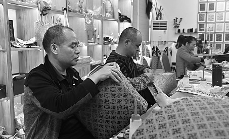 12月17日,在广西宾阳壮锦文创馆,工人制作壮锦文创产品。广西宾阳县有着悠久的壮锦生产历史。近年来,该县在传统壮锦生产的基础上,积极推动壮锦文创产业发展,拓宽了当地劳动就业渠道。