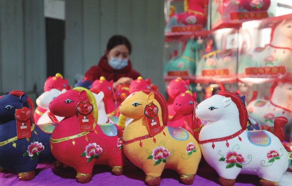 腊八过后就是年。在山东各地,以“马”为主题的文化创意产品正如火如荼地涌现,从博物馆的文物衍生品到非遗工坊的手作精品,从传统玩具到现代文创,各种“马”元素产品琳琅满目,共同奏响一曲新春文化交响乐。图为1月16日,在山东省临沂市沂南县界湖街道一家玩具生产企业,工人在制作国潮布艺唐马。新华社发王彦冰/摄