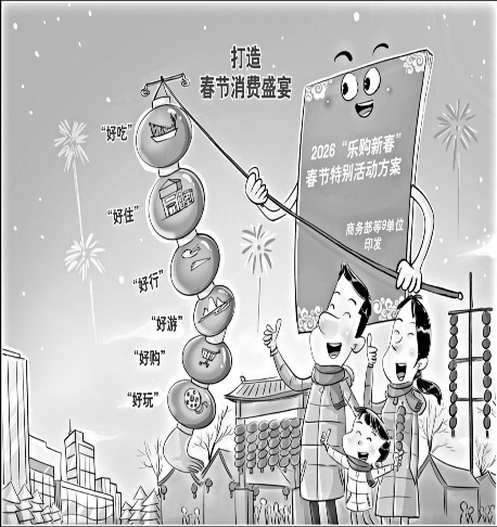 记者2月2日从商务部获悉,商务部等9单位日前印发《2026“乐购新春”春节特别活动方案》,活动时间为2月15至23日春节9天假期,旨在繁荣节日市场、丰富群众文化生活、激发假期消费活力,打造全域联动、全民乐享的春节消费盛宴。根据方案,活动涵盖“好吃”“好住”“好行”“好游”“好购”“好玩”六方面内容。新华社发王鹏/作