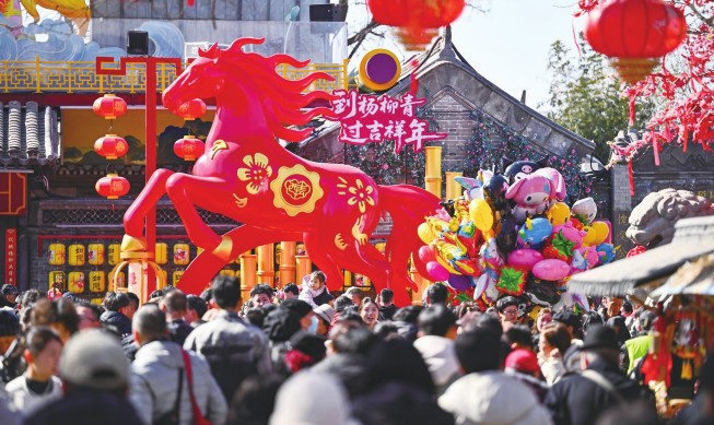 春节假期,天津杨柳青古镇“到杨柳青过吉祥年”主题活动持续升温,古镇全街区全天候排布特色演艺与互动体验,为游客带来多维度、沉浸式的新春年俗盛宴。新华社记者赵子硕/摄