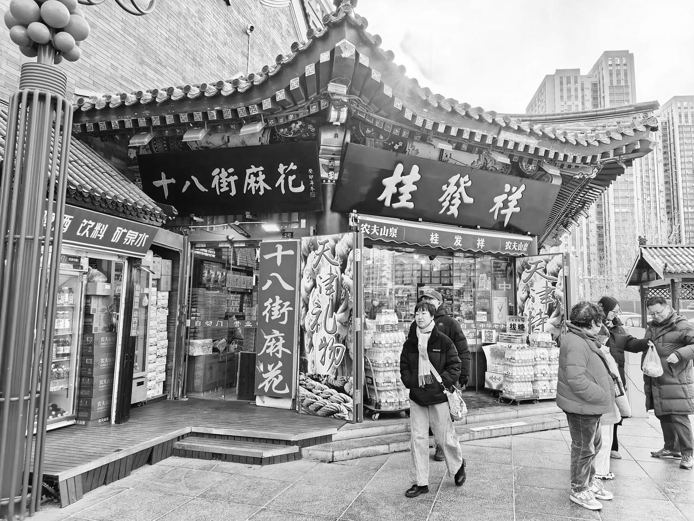 在刚刚过去的春节假期,年味溢满津门大地。汇聚天津特色的古文化街张灯结彩,“津门故里”的彩绘牌坊下,一排排大红灯笼、一簇簇游玩行人,古朴韵味中溢满喜庆热闹的节日氛围。 2026年春节,天津市推出了一系列贯穿春节假期的文旅活动,将传统年俗、非遗展演、沉浸式体验与现代光影科技深度融合,让游客感受最地道的津味春节。其中,南开区古文化街管委会以“古街寻味中国年,非遗百戏闹新春”为主题的系列活动格外亮眼。在这条汇聚数十个非遗品牌的古街中,游客不仅可以品尝非遗美食,还能体验非遗手工艺品、非遗展演等,在一片烟火气中感受“非遗里过大年”的独特韵味。 走进天津古文化街,浓郁的非遗气息扑面而来。街口一侧是天津非遗美食桂发祥十八街麻花,进店消费者络绎不绝,店内商品琳琅满目,散装大麻花堆积如山,各类包装精致的礼盒错落摆放。店员告诉记者,春节前后,走亲访友需求增多,购买礼盒类产品的消费者较多,比如夹馅小麻花礼盒、津味小八件礼盒等都销量较好。街口另一侧,极具本地特色的耳朵眼炸糕档口前排起长队,即使天气寒冷,仍挡不住大家的消费热情。一位排队的消费者告诉记者:“平时在外工作,就想念这口小时候的味道,趁过年回家来买几个解解馋。”此外,祥禾饽饽铺的马年礼盒,造型精致,在保留传统糕点风味的同时,融入马年吉祥寓意,让舌尖上的非遗传递新春暖意。 不少非遗品牌更以创新求变,既吸引年轻消费群体,也为自身注入新活力。“国潮奶糖”门店内,中华老字号“大白兔”各类产品集中亮相,在传统奶糖基础上,创新推出咖啡、芥末、香蕉、芒果等十余种新颖口味,搭配水果糖、棒棒糖等多种品类,为消费者提供丰富选择。店员告诉记者:“春节前后,古文化街人流明显增大,进店消费者也随之增多,销售额上升明显,非常开心。” 美食之外,非遗文创也焕发生机。结合丙午马年,古文化街内的非遗店铺纷纷推陈出新,将传统技艺与马年元素巧妙融合,让非遗文创成为新春最具年味的载体。在泥人张塑古斋门店内,随处可见的十二生肖泥塑,或栩栩如生,或憨态可掬,既有传统彩塑的细腻质感,又融入现代审美,成为游客争相选购的热门单品。走进非遗杨柳青木版年画门店,经典作品“莲年有余”赫然在目,憨态可掬的胖娃娃抱着大红鲤鱼嬉戏莲叶间,瞬间拉满喜庆氛围。“年画销售主要集中在春节前,买的最多的还是代表作品‘莲年有余’,‘事事如意’‘蟾宫折桂’‘福寿绵长’‘富贵平安’等蕴含着祝福的作品购买的人也不少。”店员向记者介绍,除传统年画外,杨柳青近年来还打开思路、推出如冰箱贴、书签等多种文创产品,不仅在线下销售,还打通了线上渠道,既保留了老工艺的韵味,又契合了年轻群体的消费需求。 体会春节的热闹,锣鼓的喧嚣声必不可少。从腊月二十八至正月初七,古文化街宫前广场每日好戏连台,“津门百戏古街贺岁”非遗花会贺春展演热闹开场,高跷、舞龙等传统绝活接连登场,表演者身着艳丽服饰,踏着欢快鼓点,舒展灵动身姿,将津门民俗的豪迈与灵动展现得淋漓尽致,引得围观市民游客阵阵喝彩。此外,相声、快板、京韵大鼓等各类演出轮番上演,诙谐的相声包袱、清脆的快板节奏、醇厚的鼓曲韵味,让人们在欢声笑语中感受地道“津派曲艺”的独特魅力,沉浸式体验老天津的年俗风情。 687米的古街,汇聚近40家非遗品牌,是“津门故里”最鲜明的名片,也是天津民俗消费的火爆前沿。据天津市商务局数据,假期前5天,天津重点监测的473家商贸流通企业累计实现销售额18.4亿元,同比增长10.3%,到店客流量达1050.5万人次,同比增长10.7%。2026年,天津正以非遗为纽带,串联起传统文化与现代烟火,焕发出强劲的消费活力。 (图)天津古文化街街口处的桂发祥门店,游客络绎不绝。本报记者祝凤岚/摄