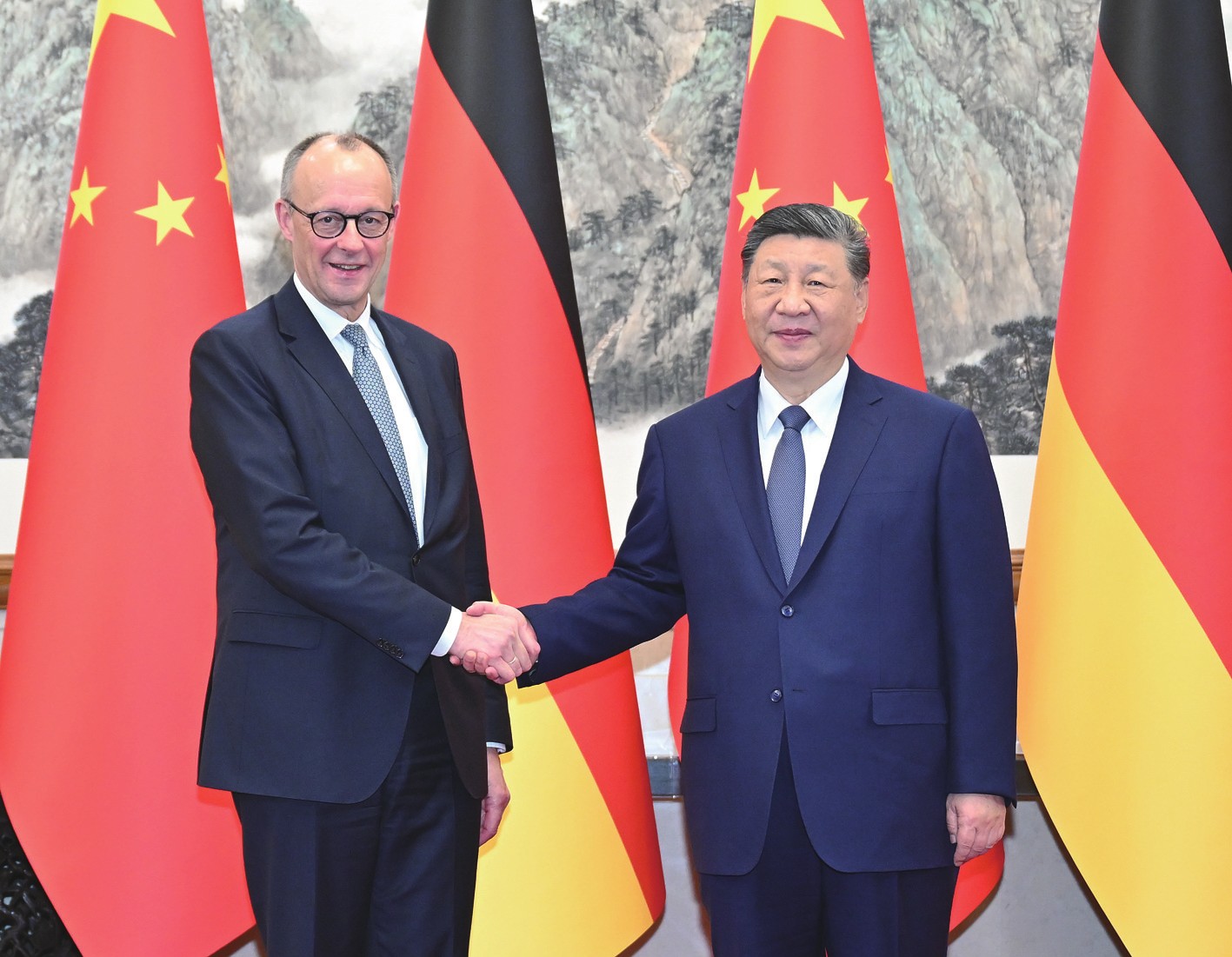 【新华社北京2月25日电】2月25日下午,国家主席习近平在北京钓鱼台国宾馆会见来华进行正式访问的德国总理默茨。 习近平指出,中国和德国分别是世界第二、第三大经济体,中德关系不仅关乎两国利益,也对欧洲和世界有重要辐射效应。当前国际形势正在经历第二次世界大战结束以来最深刻演变。世界越是变乱交织,中德两国越要加强战略沟通、增进战略互信,推动中德全方位战略伙伴关系不断得到新发展。 习近平对下一步中德关系发展提出三点意见。一是要做相互支持的可靠伙伴。中德两国都立足自身、快速发展,坚持互尊互信、开放合作,书写了互利共赢的成功故事。中国坚持和平发展道路,有能力和底气实现中国式现代化,将继续同包括德国在内的世界各国分享发展机遇。希望德方客观理性看待中国发展,奉行积极、务实的对华政策,同中方一道推动中德关系行稳致远。 二是要做开放互利的创新伙伴。德国政府在技术、创新、数字等领域提出新发展战略,同中国“十五五”时期智能化、绿色化、融合化发展方向高度契合。双方应加强发展战略对接,支持两国人才、知识、技术双向流动,促进人工智能等前沿领域对话合作。双方要正确把握竞争和合作的关系,寻求互利共赢的合作路径,共同维护产业链供应链稳定畅通。 三是要做相知相亲的人文伙伴。中德都是拥有深厚文化底蕴的大国,双方要加强文明互学互鉴,密切人文交流,巩固中德友好民意基础。 习近平强调,面对加速演进的世界百年变局,各国应该风雨同舟、命运与共。中德应坚持联合国的核心地位,重振联合国的主导作用,带头做多边主义的维护者、国际法治的践行者、自由贸易的捍卫者、团结协作的倡导者。中方支持欧洲自立自强,希望欧方同中方相向而行,坚持战略伙伴定位,坚持开放包容、合作共赢,实现中欧关系更大发展,为世界和平与发展作出更大贡献。 默茨表示,很高兴在中国人民欢庆春节的时候来华访问,祝中国人民马年吉祥。德中建交以来保持着友好交往和密切合作,为两国人民带来福祉。德方珍视对华关系,坚定奉行一个中国政策,愿同中方一道,延续友好传统,坚持相互尊重、开放合作,不断深化两国全方位战略伙伴关系。德国企业界高度重视中国市场,希望进一步深化对华合作,实现互利互惠、共同发展。国际局势正在发生深刻变化,德中肩负着共同应对全球挑战的重要责任。德方期待同中方加强协调,坚持自由贸易,反对保护主义。欧盟同中国发展可靠和持久的经贸合作关系符合双方利益,也有利于世界稳定繁荣,德方支持欧中加强对话与合作。 两国领导人就乌克兰危机交换意见。习近平阐述中方原则立场,指出关键是坚持通过对话谈判寻求解决方案。要确保各方平等参与,筑牢和平基础;确保照顾各方合理关切,增强和平意愿;确保实现共同安全,构建持久和平架构。 双方发表《中华人民共和国和德意志联邦共和国联合新闻声明》。 王毅参加会见。(董雪) (图)2月25日下午,国家主席习近平在北京钓鱼台国宾馆会见来华进行正式访问的德国总理默茨。新华社记者李响/摄