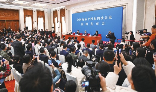 三月三日,全国政协十四届四次会议新闻发布会在北京人民大会堂举行。大会新闻发言人刘结一向中外媒体介绍本次大会有关情况并回答记者提问。新华社记者陈晔华/摄