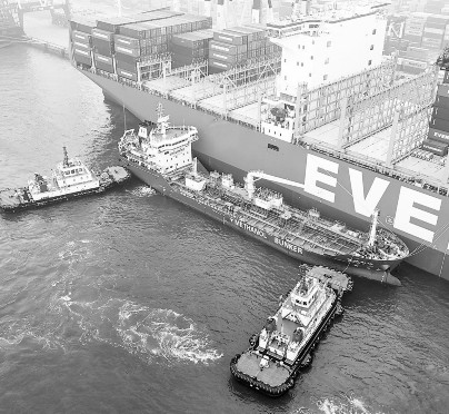 山东港口青岛港完成首批绿色甲醇“船对船”加注