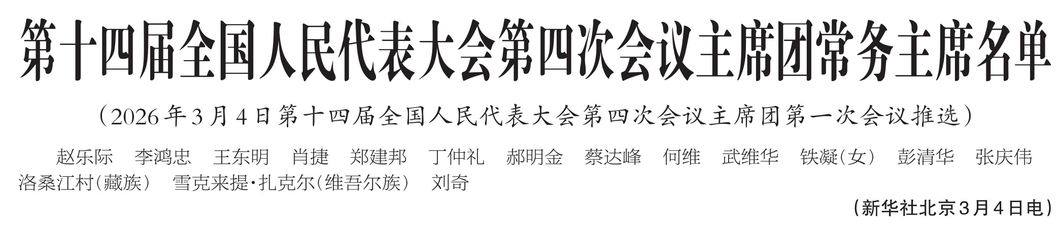 第十四届全国人民代表大会第四次会议主席团常务主席名单