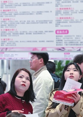 3月6日,求职者在招聘会现场查看岗位信息。当日,“巾帼有技·兴庆有岗”专场招聘会在宁夏银川市兴庆区砂之船(奥莱)举行。本次招聘会关注女性就业创业需求,设置“银发经济”爱心岗位和制造业特色招聘专区,还提供岗位对接、技能指导、政策宣讲、文化体验等多元服务。新华社记者冯开华/摄
