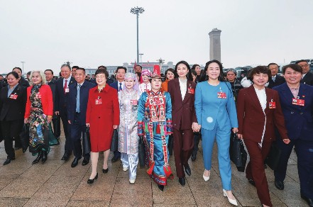 3月5日,第十四届全国人民代表大会第四次会议在北京人民大会堂开幕。这是全国人大代表走向会场。出席十四届全国人大四次会议和全国政协十四届四次会议的女代表、女委员们,带着人民的嘱托,将时代的命题写入履职答卷,用务实的建言在庄严会场激荡出回响。柔肩担重任,巾帼绽芳华。从工厂车间到边疆学校,从基层讲台到民族村寨……她们的故事各不相同,却指向同一个方向——中国女性用奋斗,为时代作答。