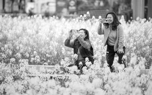 3月9日,游客在油菜花田游玩。