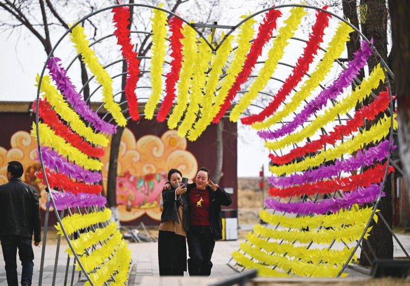 图为游客在位于画匠营子村的“天下黄河第一村”景区自拍。