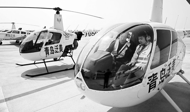 青岛泛美通用航空有限公司学员在学习直升机驾驶(4月2日摄)。