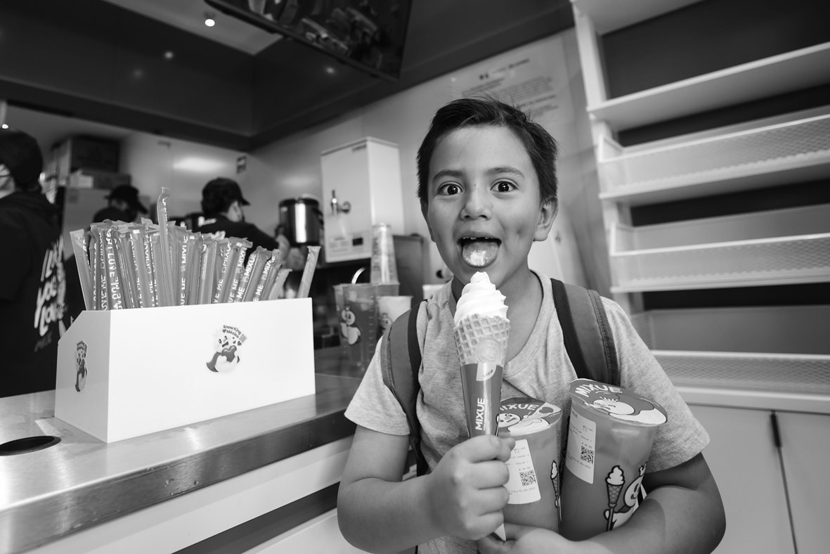 4月1日,在墨西哥首都墨西哥城的宪法广场,一名儿童手持蜜雪冰城的产品。