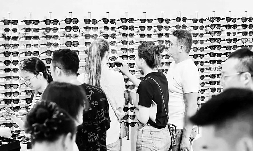 | 在2025年的温州国际眼镜展上,温州瓯海区眼镜行业协会组织通达光学、朗盛光学、冠豪眼镜、八达光学等10家企业集体亮相,展现瓯海眼镜产业的创新能力与抗风险韧性。图为消费者在选择适合的眼镜。瓯海区眼镜行业协会供图 |