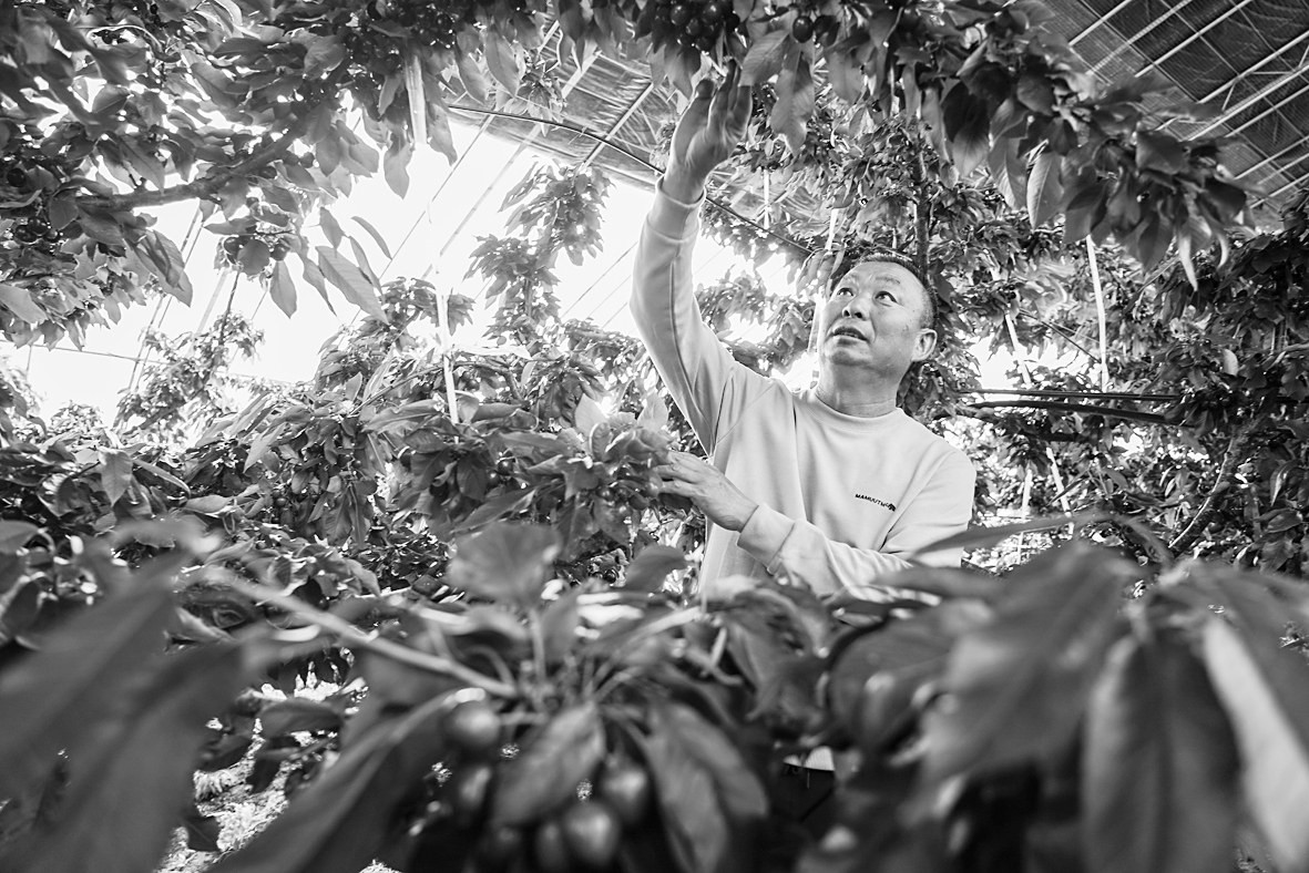 日前,燕崖镇果农在大棚内采摘樱桃。