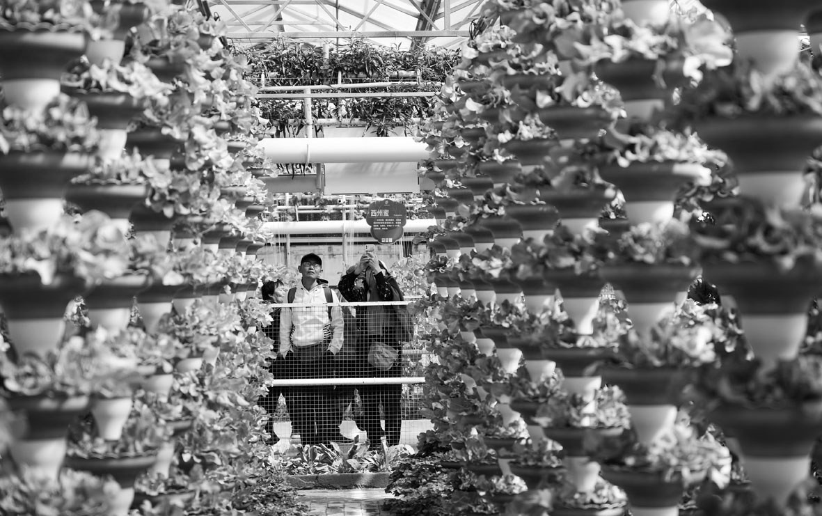 4月20日,第二十七届中国(寿光)国际蔬菜科技博览会在山东潍坊寿光市蔬菜高科技示范园开幕。本届博览会以“绿色·科技·未来”为主题,集中展示国内外优质蔬菜品种、种植新模式与核心新技术。博览会将持续至5月30日。图为人们在蔬菜科技博览会上参观。