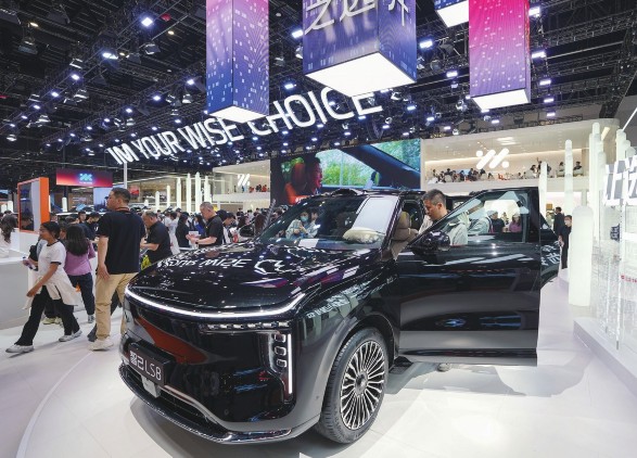 4月26日,在2026北京车展上,参观者在智己公司展台参观智己LS8。4月26日,2026(第十九届)北京国际汽车展览会迎来首个专业观众日,38万平方米的总展览面积、1451台展出车辆,其中181台首发车、71台概念车,吸引了众多参观者。新华社记者鞠焕宗/摄